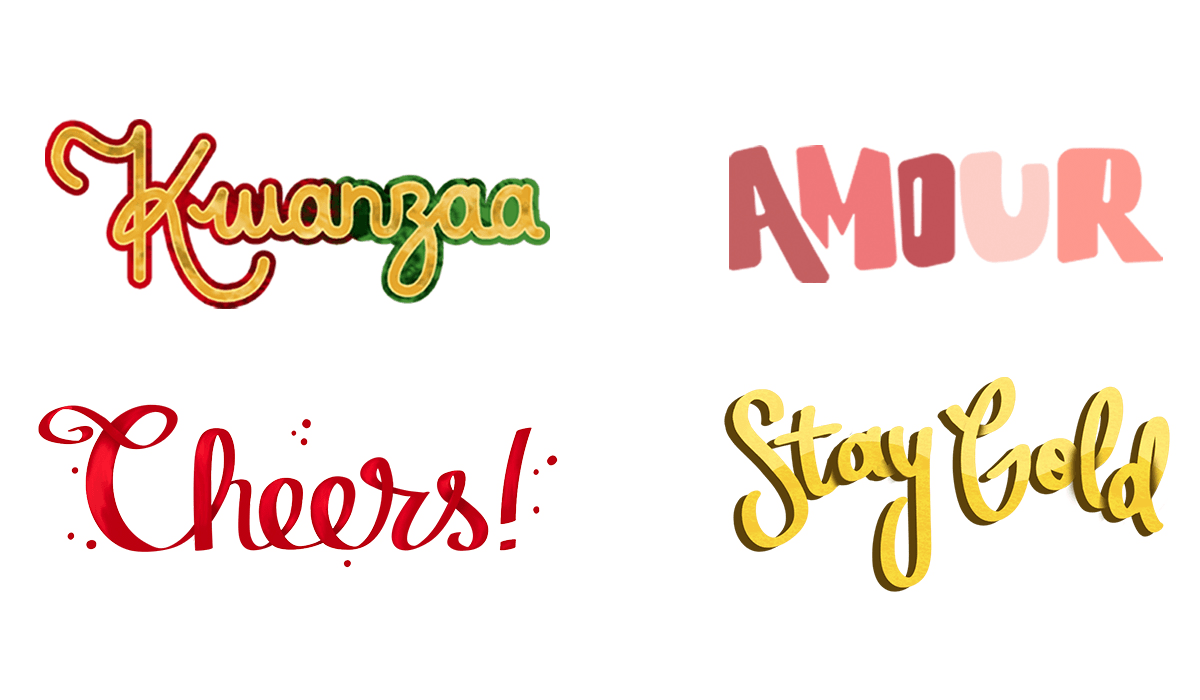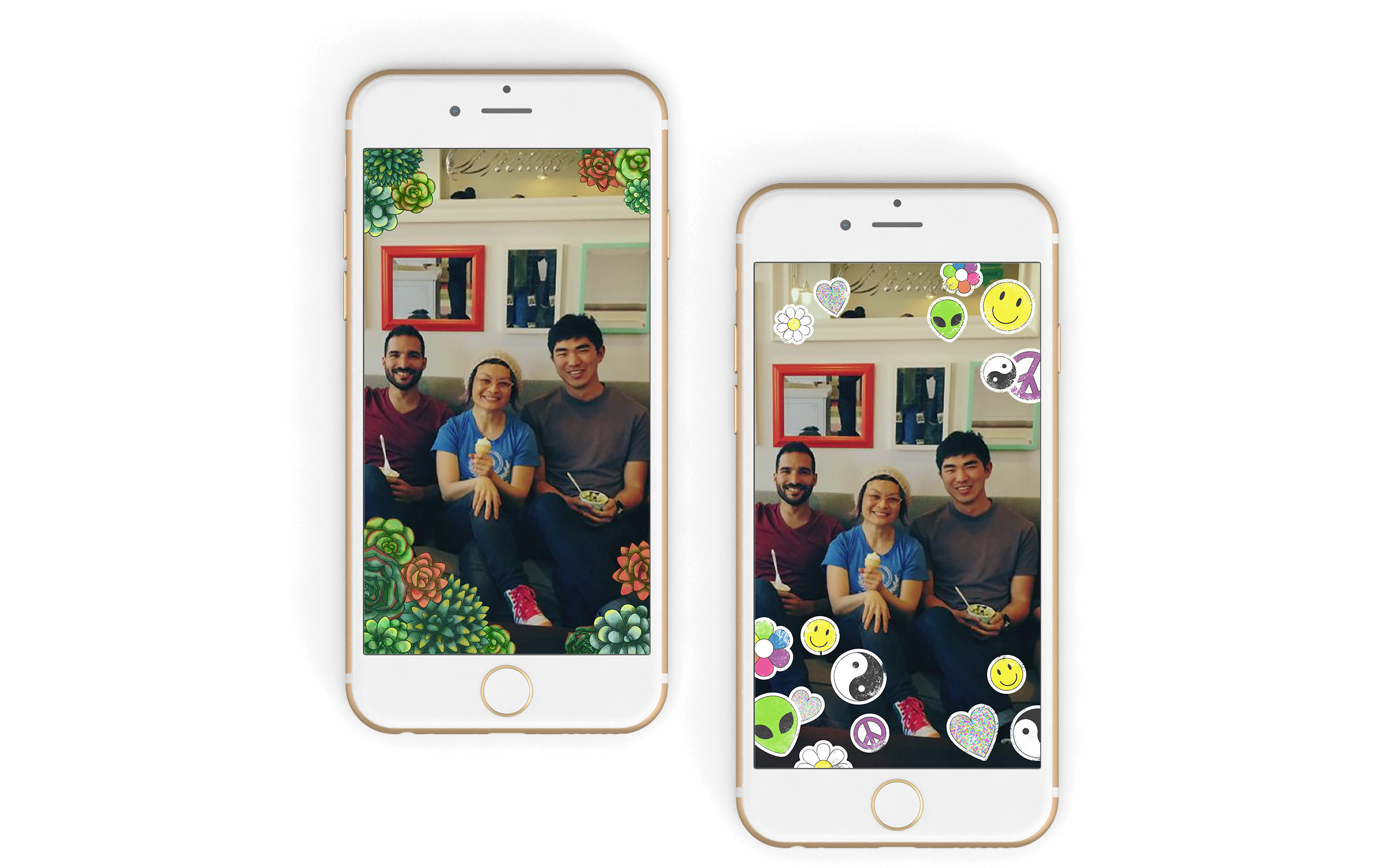 Frames and stickers developed for Facebook Messenger based on trend data and prompts. Stickers were hand-lettered, frames were painted using photoshop and illustrator.