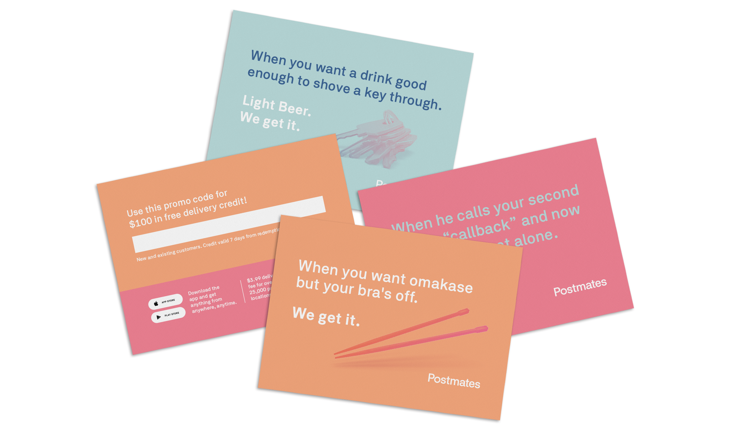 Digital and print work created as part of Postmates’ We Get It campaign.